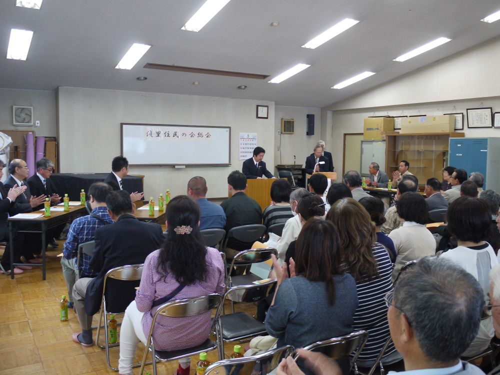 平成28年度渡里住民の会総会 2016年05月14日 17:38 平成28年度「渡里住民の会」総会が渡里市民センター ホールにて開催されました。開会に先立って水戸市長高橋 靖様よりご挨拶を頂きました。その後開会し、安部 啓一会長あいさつ、市民憲章唱和、市歌斉唱、来賓あいさつ後に議事に入り、報告第1号 平成27年度事業報告について、報告第2号 平成27年度収支決算書について、監査報告、議案第1号 平成28年度事業計画(案)について、議案第2号 平成28年度収支予算(案)について、議案第3号 役員改選についてへと進行しました。その後質問に対する回答があり、全会一致で承認され、正午前に無事閉会となりました。 カテゴリなしの他の記事 < 前の記事次の記事 > コメント コメントフォーム 名前 コメント 評価する リセット リセット 顔 星 投稿する 情報を記憶